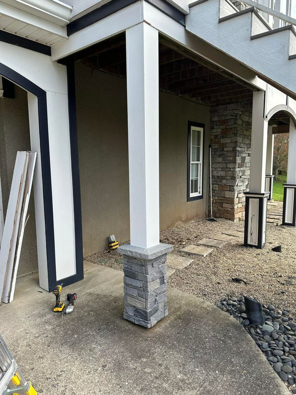 Deckorators, NextStone, and GenStone products offer a stone column wrap solution that transforms plain porch columns or basement posts into eye-catching features